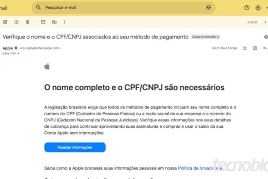 Email enviado pela Apple solicita o CPF (imagem: Thássius Veloso/Tecnoblog) Resumo A Apple está solicitando CPF e data de nascimento dos consumidores brasileiros devido à reforma tributária. A legislação brasileira…